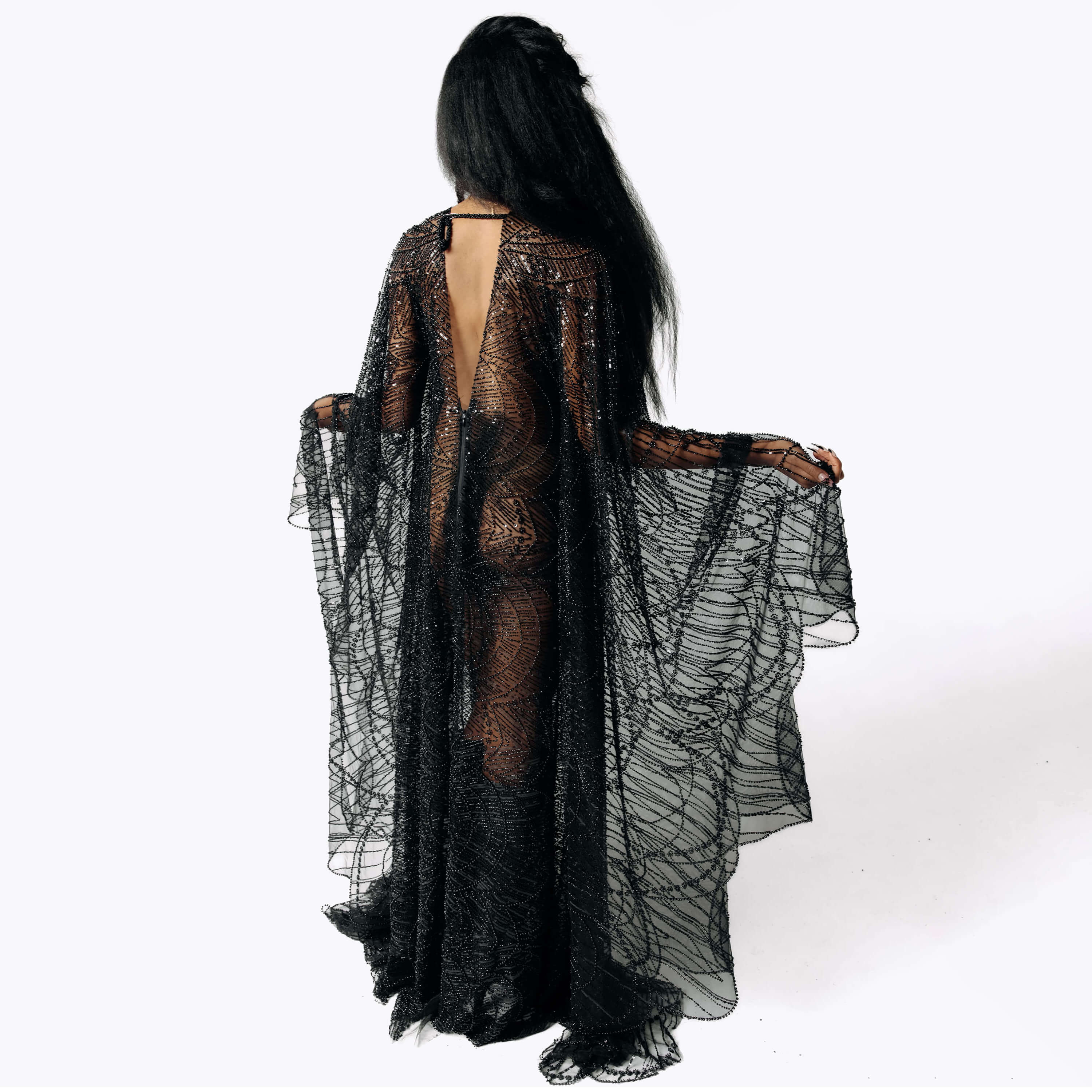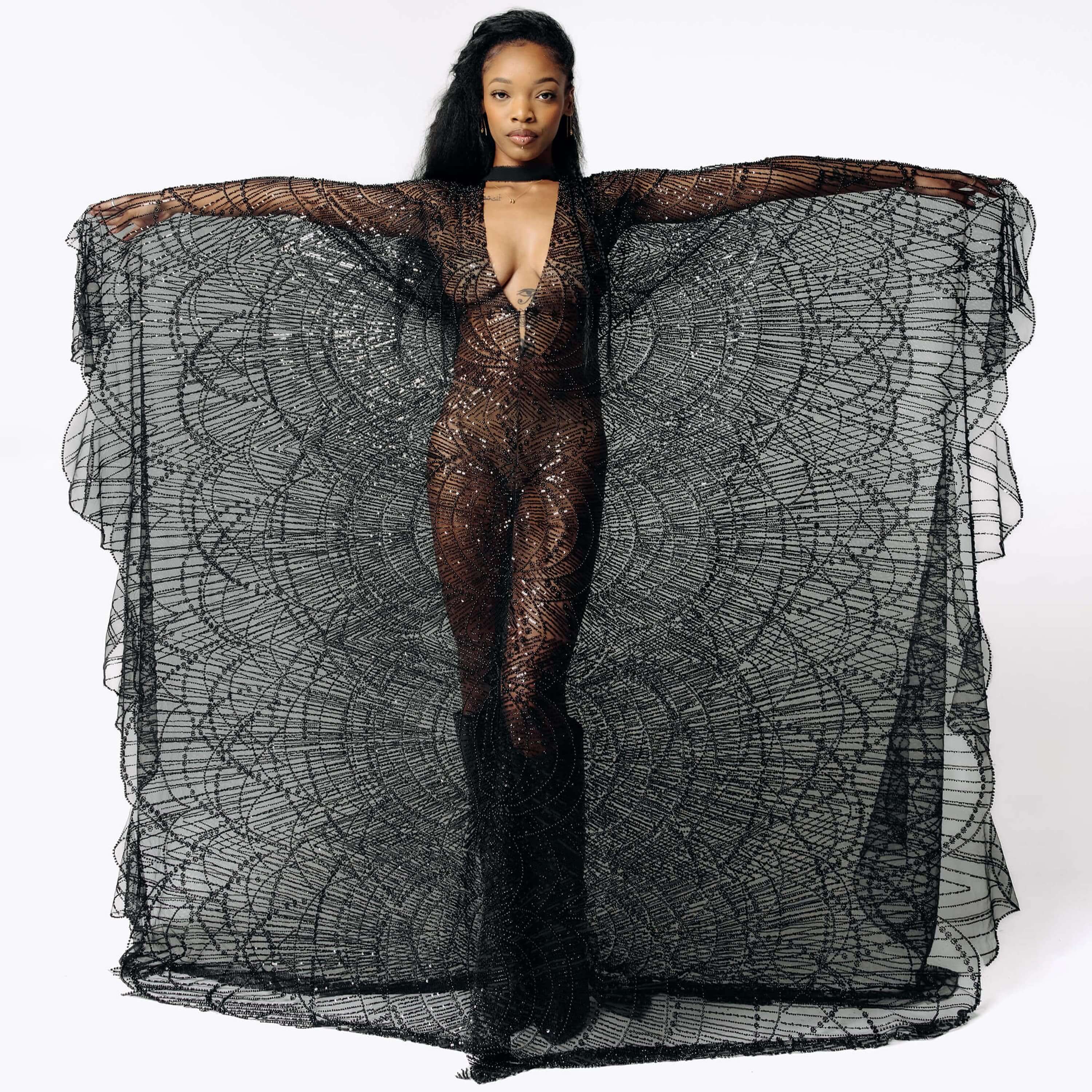 Azrael Black Beaded Bat Wing Dress